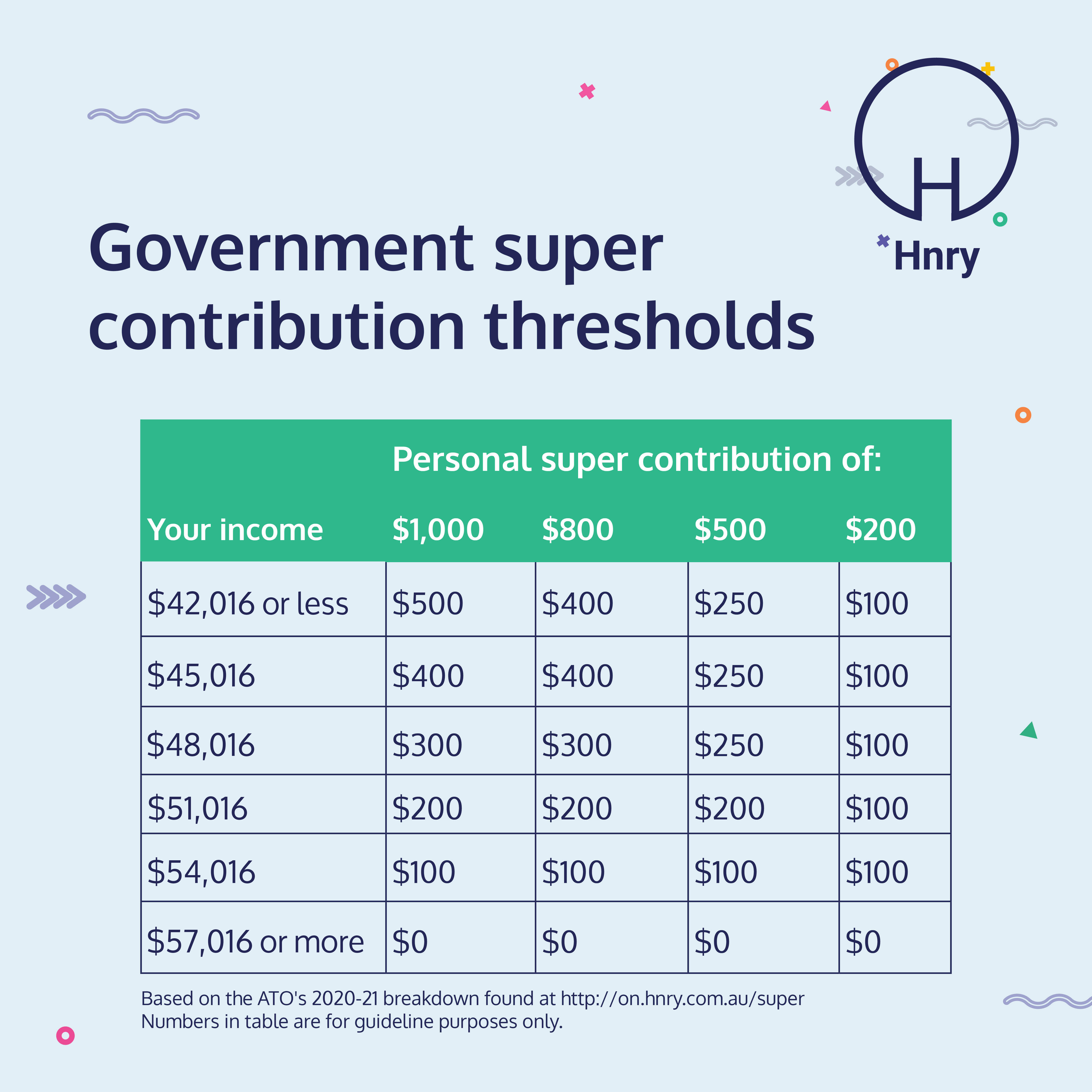 The Australian government has an initiative called the Super co-contribution scheme, to help low- and middle-income earners increase their superannuation contributions. The government will match a certain amount of contributions you make into your superannuation up to a maximum of $500. So put simply, if you meet the eligibility criteria and put $1000 into your superannuation scheme, the government will give you $500 for free. This government contribution gets paid directly into your super scheme after you have lodged your tax return. Just a note, however, if you make personal contributions and claim an income tax deduction for the contribution, you won’t be eligible for the co-contribution scheme.
