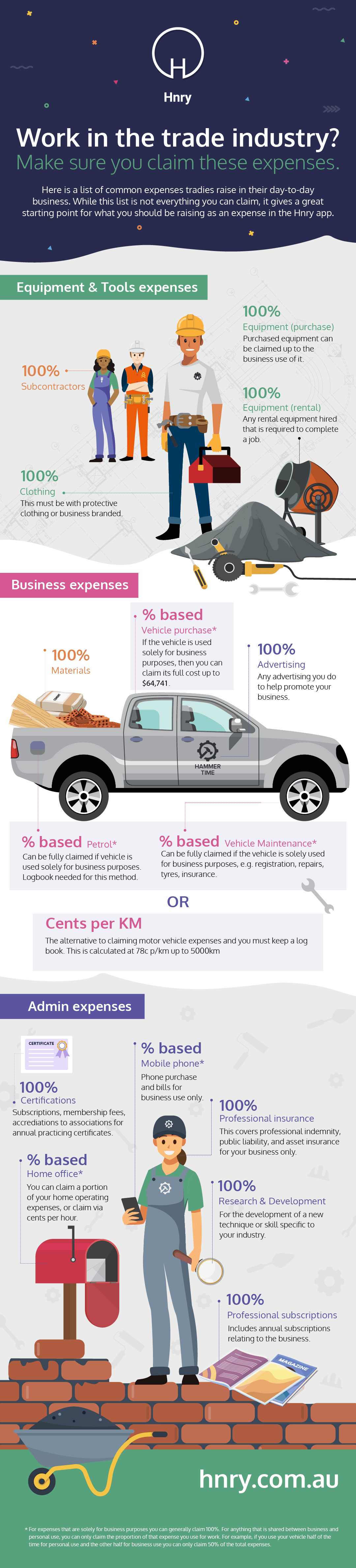 Here is a list of common expenses tradies can raise as part of their day-to-day business activity. While this list doesn’t have everything you can claim, it’s a great starting point for you to maximise your tax deductions.